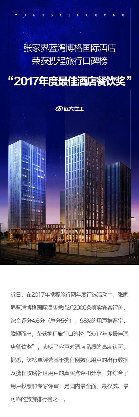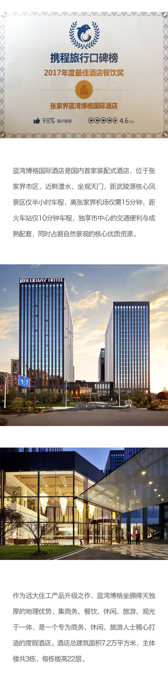 張家界藍(lán)灣博格國際酒店榮獲攜程旅行口碑榜 “2017年度最佳酒店餐飲獎”